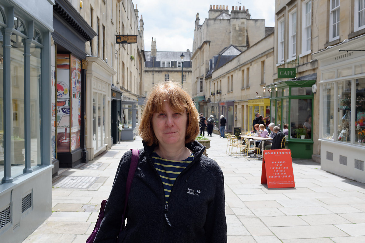 Jane at Margaret's Buildings (after nice lunch at the Café behind!)